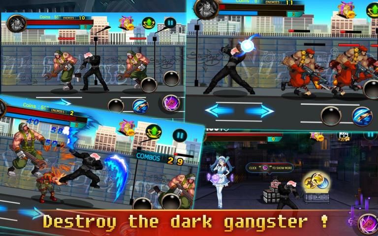 The true heroes are born in the street fighting. Nonstop fighting and beat all opponents to become the king of street. Show your strength and great fighting skills, transformed into the King Street and competing in the shadow street battles with Black Fighter - Shadown Hero.