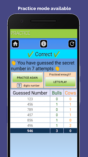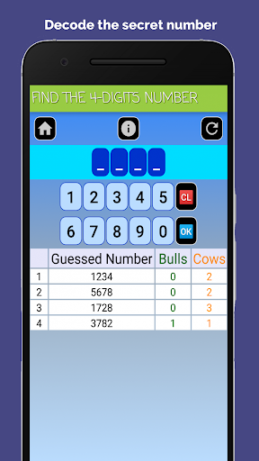 Bulls and cows is an app version of old paper and pencil mind game. With the help of hints, decode the secret number.