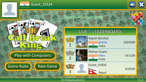 2) Call Break King will be five rounds of play or five deals in anticlockwise direction.