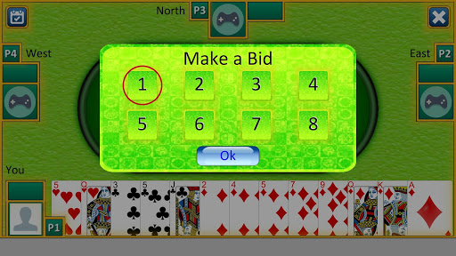 Each player has to bid a number of tricks or hands which is minimum tricks he/she must win to get a positive score in that round. Extra tricks won will be added in the score.
