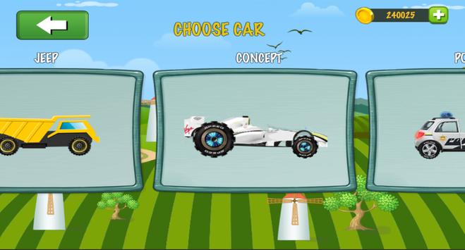 Car Climb Mountain outstanding and aspiring ultimate young mountain racing driver.He will start an entertaining driving journey. Choose a car to face the unique hill climbing environments.Collect coins to upgrade your car and reach greater distance. Conquer the highest hill!