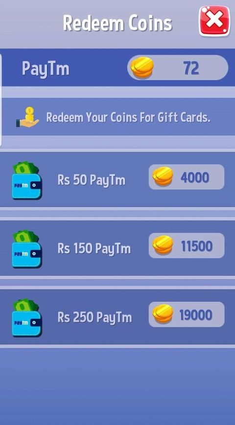 All you need to do is play Cash Cube game and collect at least required amount of coins for redeem into PayPal or Paytm cash. The more coins you collect the higher cash amount you will get. The cash will be paid through online money transfer.