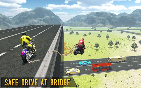 Are you ready for one of the most fascinating and satisfying bike chain break driving experience in the world? If yes then download this Moto bike chain driving 3D game in the stadium. Let me break the biggest secret about this Moto bike traffic extreme racer 3D game and that is this tricky motorbike stunt rival racing game is just not Moto real bike driving game simulator game but also a car racing, Prado jeep racing, and tuk-tuk rickshaw racing. With its advanced features now, you can select between different cars racer bikes and multiple monsters extreme full bike racing vehicles. This impossible crazy bike stunt challenge game is a milestone in the category of the different model of the real highway motorcycle driver. Race through highway with enemies, avoid any traffic incident for a long time and get an opportunity to become a drive motorcycle crazy off-road rider. You are a speed rider and going to rock this Xtreme turbo bike racing free 3D on your high-speed car and on your fast speed bike. Smooth and realistic control handling make this asphalt city bike nitro racing fun ride game a furious motorbike dangerous stunt 2017 game with realistic ultimate bike desert rally simulator and driving physics. If you drive through the highway with high speed on your speed bike with enemies or on your speed car then you can become a first-person racer of this highway in Moto bike real attack racing adventure.