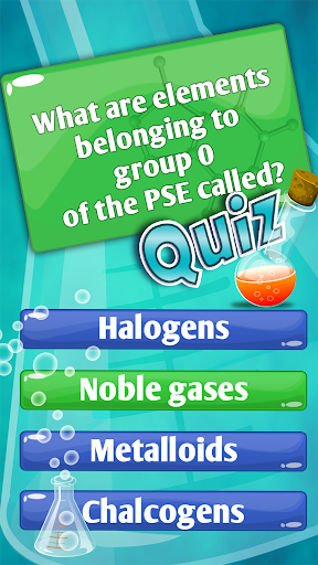 Test your knowledge on chemistry science with the latest chemistry quiz questions and answers! Download Chemistry Quiz Games - Fun Trivia Science Quiz App and show how much you know on atoms and molecules, acids and basis, balancing equations, periodic table of elements and much more. Learning has never been so much fun! Check how much you really know on organic chemistry and inorganic chemistry, chemical formula, vocabulary and all the other aspects of this fascinating subject. Step into the amazing question lab and take the ultimate chemical quiz right now! Try out the most challenging chemistry objective question answer quiz on chemical reactions and equations and fundamental chemical formulas and names.