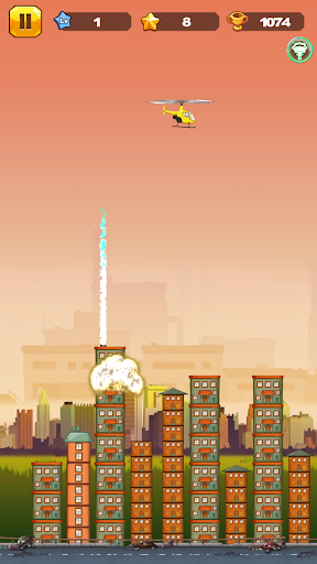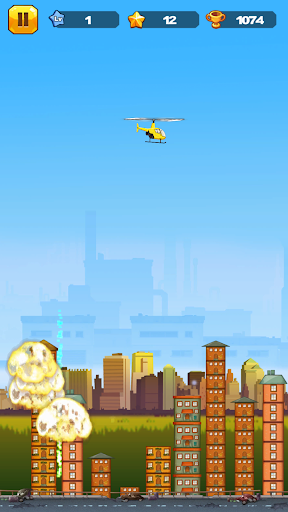 - Touch any where on screen to drop bombs and clear buildings before you hit them.