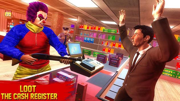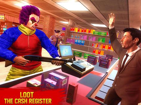 Create chaos in the market and the city, be the criminal clown gangster robber. You have executed a perfect gangster robbery in this crime city supermarket rush as a disguised creepy clown. Now someone has informed the crime control police department of the clown robbery mafia and they have high alert on and have arrived on the scene. It's time to survive and escape from city supermarket before getting caught. Don’t stand like a creepy clown, do whatever it takes to pull of this grand heist and become criminal mafia robbery master. They have orders to shoot at sight. You have to survive at any cost and also take the cash bags with you. The cars you use are stolen. You guys are criminal clown robbers and you must not get caught in this action crime fight with cops. The clown master gangster robbery escape is the complete action robbery simulated game. Just be ready to live intense thug life like real gangster full of dangers. Drive mafia gangster cars, rob supermarkets and face police pursuit in amazing gangster games. You will experience real hand-to-hand fight with your opponents and fight with the batons and different combos to attack and kill them all. Exciting crime gameplay with an objective to rob the place and customers, steal the cash in the supermarket and escape in high-speed police car chase in the given time. Police has come to rescue supermarket innocent citizens who came to buy grocery & food items. You are a Vegas crime city clown gangster who has managed to enter superstore, turn off all cameras, destroy the CCTV security footage and execute perfect gangster robbery in the city mall.