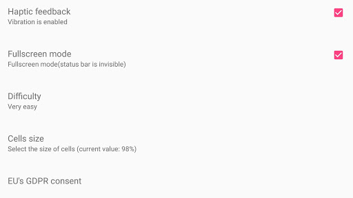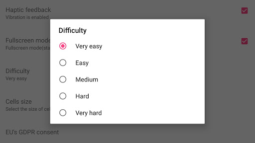• You can change difficulty (% of mines on map).