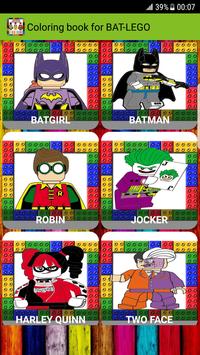 Coloring Book for BAT-LEGO is a coloring game that is both educational and funny. This game is for all people, girls or boys, attracted by the coloring of the drawings of the super heroes in LEGO mode and finding pleasure by coloring the famous friends of batman in Lego such as Batgirl Lego, Robin Lego, Jocker Lego, Harley Quinn Lego , two face Lego, batman Lego.