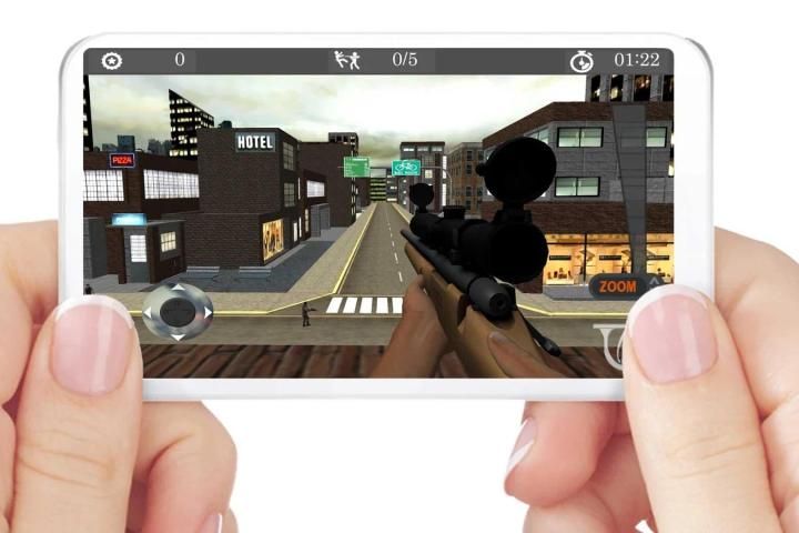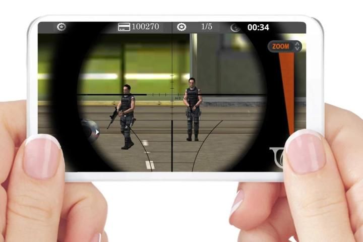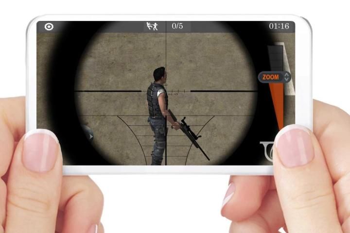 You can use joy stick to move the commando character around to see your enemies. And there is a zoom in aim button, you can zoom all the way you want and aim for the perfect headshot.