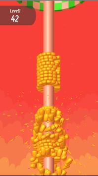 Slice the coin by tapping, and pressing hard. Release to undo the band and watch out for obstacles. Each corn cob has something on it, which you will need to avoid to be able to chuck the corn off of the cob piece safely.