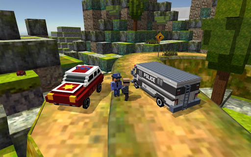 CRAFT POLICE OFFICER, DRIVE CRAFT POLICE CAR TO PATROL THE HILL CLIMB ROADS AND ARREST ROBBERS, SEND THE BAD GUYS TO POLICE STATION.