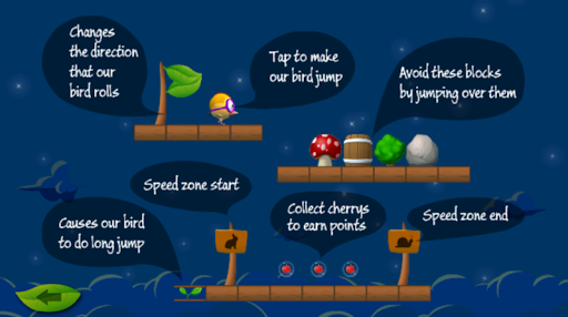 Hopping bird like to eat cherries but you have to overcome many obstacles like mushroom and obstacles such as rocks and trees that prevent hopping bird from eating his cherries. If you begin to play it, you will be addicted to it and fully immersed into the game environment. It's more challenging and fun than it seems!