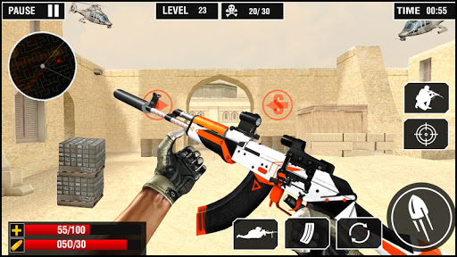 Sniper, Pistol, machine gun, rocket launcher, grenade and many other firearms are available for you in this critical strike game. Lead your military squad during this critical strike. The modern shooting combat is real. Be the hero soldier of offline games.
