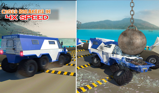This deadly car crashing game is equipped with ultra real physics & high quality stunt racing car accidents. Entertain yourself and prove ultimate civic car driving skills in this xtreme speed breaker challenge on bumpy road. Experience real crash test car accident and vehicle destruction as you drive through deadly car speed bumps on drift car racing tracks. There are 100+ speed bumps high speed jumps to cross with luxury car on highway road. Get behind the steering wheel of 8x8 mud runner truck, hit the cop car throttle to smash & crash through deadly hurdles. Select vehicle of your choice among pro atv, SUV, off-road jeep, russian truck or cop car and take a run down this turnpike of torture.