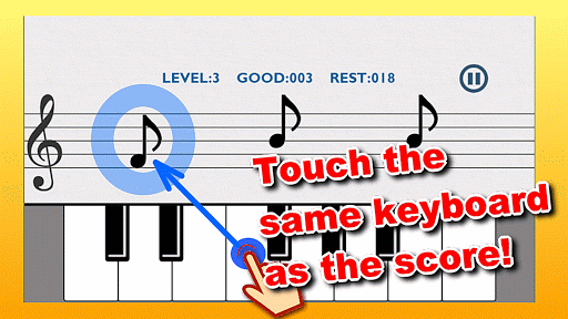 Since the note from the right will come flowing, please tap the keyboard with the same sound as the note.
