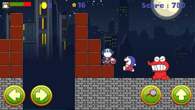 Doreamon the blue robot cat and his powerful gadgets in this adventure of jungle world. You can select all the dora gadget from his pocket and use it to shoot enemies and speed up to avoid obstacles. Run, dash and jump along this adventure of super cat. In Doremon Jungle Adventure Game, you will face the mutant alien animals from the future vow to destroy the planet earth. Lucky you also be supported along by your friends like takeshi and nobita kun. Can you survive this alien invasion? Do also remember to collect all the tokens of gold coins to score high in leaderboard and beat your family and friends.
