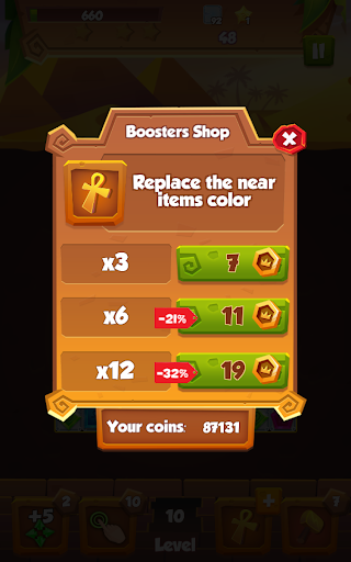 “Egypt Jewels” is a free game, but some virtual items also can be purchased for real money.