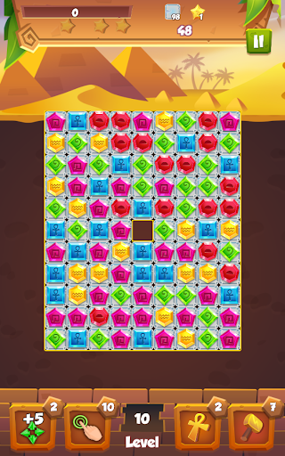 Egypt is an amazing country with a rich heritage of ancestors. Egyptian pyramids are well-known by almost every human on the Earth. Walk along the realistic diamond valley somewhere in the ancient Egypt country. Here everything is literally filled with shiny diamonds. Jewels are met at every step (level), you just need to learn how to gather them. It's quite simple at the beginning: swap identical stones located next to each other to build vertical and horizontal lines.