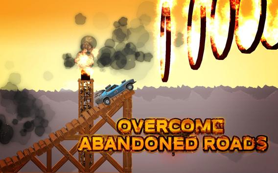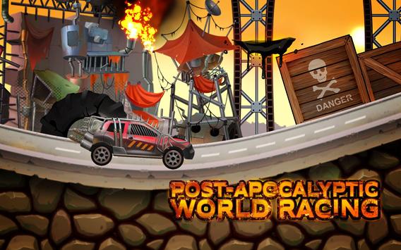 Become the post-apocalyptic speed racer and race out of this land of absolute destruction. Overcome dangerous roads, burning bushes and rock falls. Drive on abandoned roads, moving constructions, bridges or even dark tunnels. Smash through the all obstacles that prevents your from the escape.