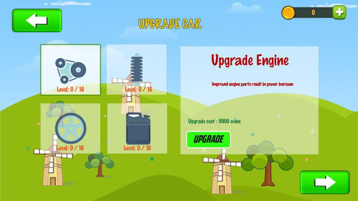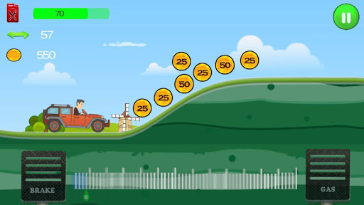 Control your car, tank, or bike to climb hills with most realistic control to face the challenges of unique uphill & downhill environments. Gain bonuses from tricks and collect coins to upgrade your cars and reach even higher distances.