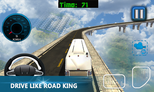 Get ready to experience flying van coach with best mid-air ramps for mad truckers in racing tracks of xtreme coach along car stuns on impossible difficult paths. So steer you gear with high on fuels, get behind the wheels and enjoy the scary drive of all the time with dangerous racing on impossible van path with endless driver in this driving games.