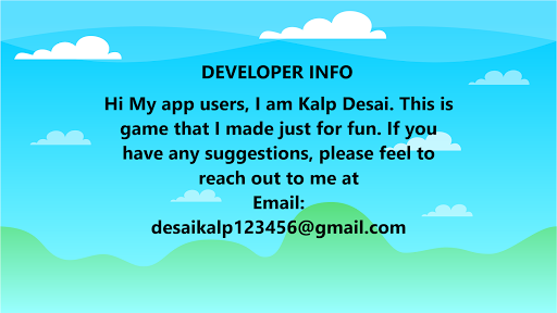 No ads, No high graphics but still feel graphical app. This app will show you high score, the effective sound and much more.