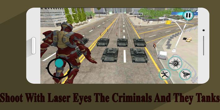 and fights vilians and tanks to save the city from army of evil. this is a iron superhero simulation game .