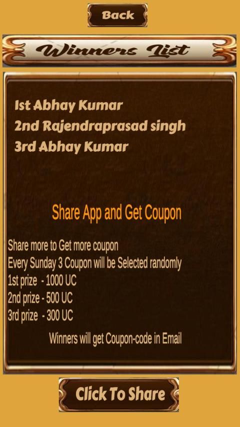 Every Sunday 3 lucky winners will get 1000UC as Reward.