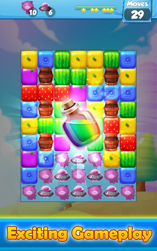 simply tap on 2 near by blocks in the same color and make them fruit pop and blast juicy fruit juice, make jelly fruit pop with more than 5 near by candy fruit block to create booster that will help you blast more jelly fruits blocks to complete the level puzzle.