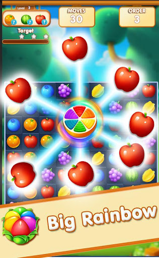 - Match 5 fruits follow to create a rainbow fruits. Add use it to destroy allfruits that same color