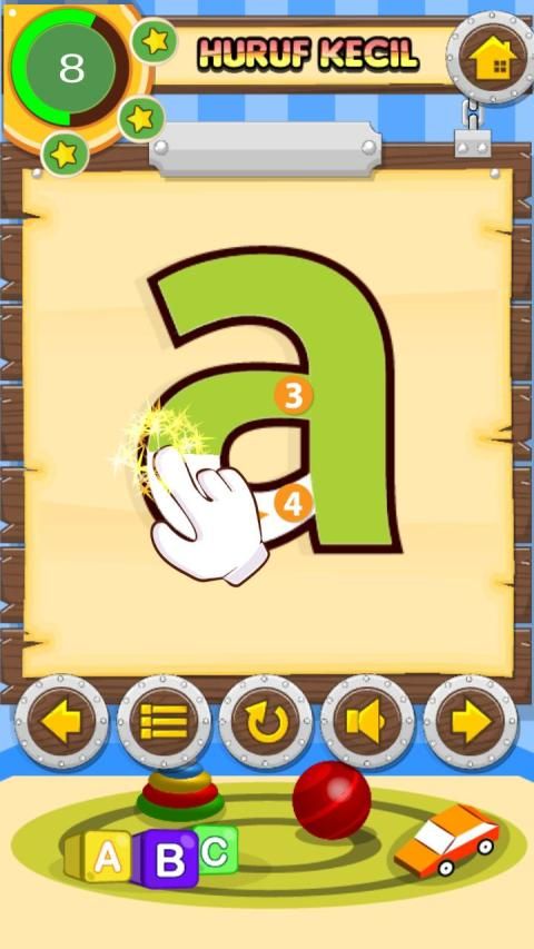 Kids Games Educational Letters is a game aimed at early childhood in knowing and writing letters. In this game, children will recognize capital letters (large) and lowercase letters. Then learn to write with practice directly. The practice of writing letters uses direction guides for writing letters, accompanied by narratives and images to facilitate understanding of the material. Alphabet letters are studied starting with uppercase letters A-Z and lowercase letters a-z. In addition there are games that can be used to test the level of understanding of children: