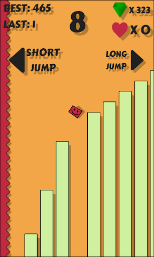 Try to do as many jumps as you can, don't be touched by the big boss wall with spikes coming from the left, continuously, and don't fall by missing tiles.