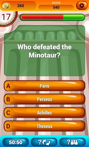 You like quiz games? Ready to flaunt your knowledge about the lives and deeds of Greek gods and goddesses? Prepare your wits and nimble fingers for Greek Mythology Quiz Game, the impossible game that might turn out to be the hardest game in the world or a piece of cake! Test your knowledge of “ancient Greece” and its myths. See if you know all Greek mythology names and events. Gods and goddesses, Titans, mythical creatures like Cerberus, Minotaur, Hydra, Medusa or Chimera and much more! See if you know all the stories about your favorite monster and learn new things about the inhabitants of the mount Olympus! Prepare for the age of mythology! Download this awesome Greek Mythology Quiz Game for free and enjoy “general knowledge quiz” in the style of ancient Greece!