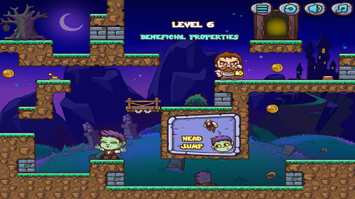 Carl was a wealthy aristocrat, who owned his own castle and lived happily. When one day he was the victim of a terrible curse and turned into a zombie by a magician envious of his wealth. Help Carl to return to his castle and to expel the evil wizard. Headless Zombie is a platform game that will make you lose your head, since you can extract it from your body and use it to your advantage to progress through the levels! "
