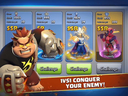 Recruit and upgrade superheroes with unique skills for the battle arena! Let them lead, attack, and conquer enemy bases, or group them into teams to complete an RPG-style campaign!