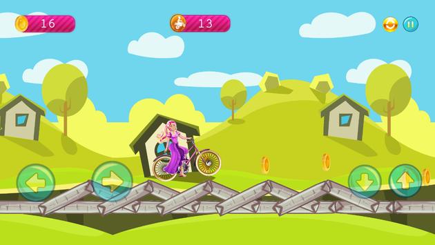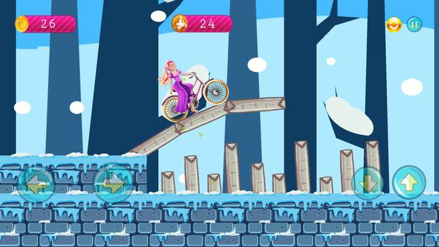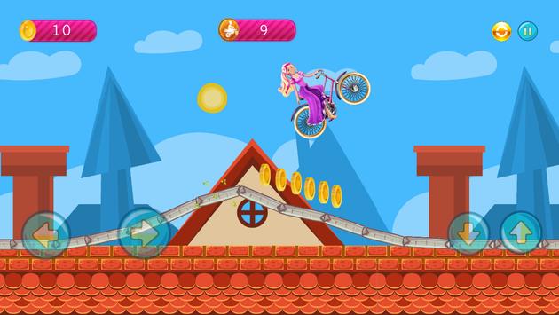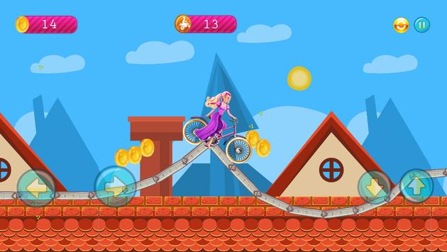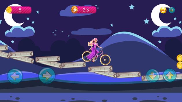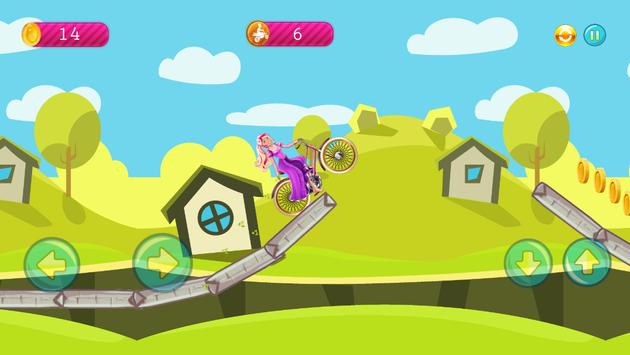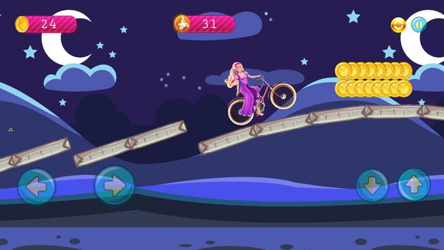 With the beautiful biker barbie in the mountains, you reached the highest score by climbing the most distance. It's a game of interest to young girls and boys.
