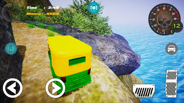 Drive through a mountainous region where your mission is to navigage the very difficult hills. !!! Hill Climb Tuk Tuk Taxi Driver will test your skills as an Auto driver who has to take care of traffic, curvy paths and treacherous turns. Your mission is to pick up passengers and drop them safely to their destination to earn money.