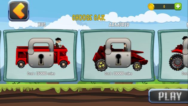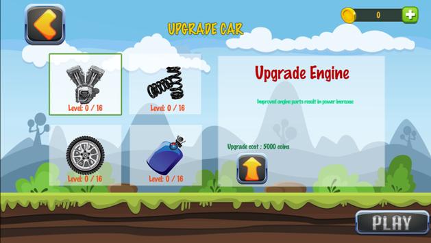 Hill Climbing Legend Different vehicles: If you don’t want to race the hilly landscapes with the red Jeep, you can also use other vehicles. You can e.g. also use tanks or bikes for cool stunts. Besides you have the possibility to improve your vehicle. You can e.g. improve the engine power or the tires.