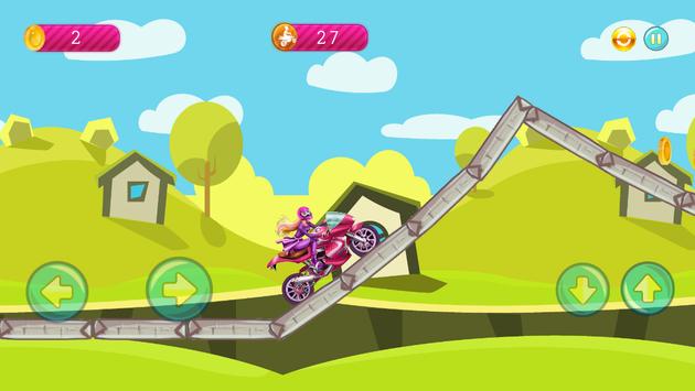 Help your miss barbie cross the hills and forest with your fast-acting motorcycle.