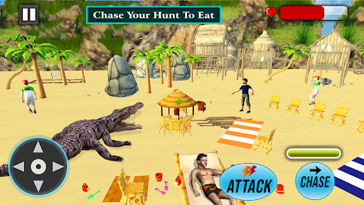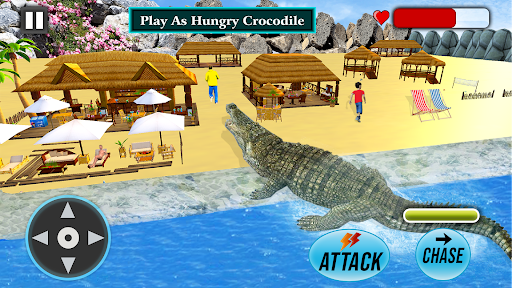 Start the thrilling adventure in hunting category as crocodile attack free: wild 3d game in which you have to experience to eat animals, humans and fish to quench the crocodile appetite. Perform different operations like swimming, slithering, crawling and attacking to get meal from beach, jungle and within water. Accomplish tasks like emerge from water suddenly to capture your prey. Crawl on to the jungle bank water environment and beach side to explore and get next meal. Put the jaws of crocodile on human people and animals like deer, cow, goat, wolf, pig, tiger, lion, zebras and also aquatic life such as fish & sea animals. Interesting and thrilling 2 modes in hungry crocodile: real attack free game will make the user addictive. Realistic hunting animations and climate will additional attractiveness of this crocodile games wild attack adventure.