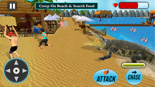 There are different challenges and stages of this hungry crocodile simulator attack gameplay. Start your first mode either beach attacking or jungle animal attacking. Learn the objective of each level and initiate to target humans, fish and wild lives. Crocodile is hungry and you have to quench its thirst by eating several lives from outside water. Eat fishes also like whale, shark and other sea animals. Target with big jaws on frantic prey to eat your favorite food. Some people disturb small crocodile, now your mission is to hunt them and save your family specie. Creep slowly and capture your meal rapidly to accomplish the challenges. People will run when they see crocodile but your task is to chase and get them. Perform your best to show your hunting capabilities to kill and eat different things. All levels of this wild crocodile beach 2018 game are exciting and unique. Probably you have played many hunting animals game but this crocodile simulator attack hunt experience is somehow addictive for users due to multiple option in crocodile selections and mode selection. Be finest attacker and don’t get your food away in this crocodile attack game: real hunt adventure.