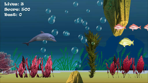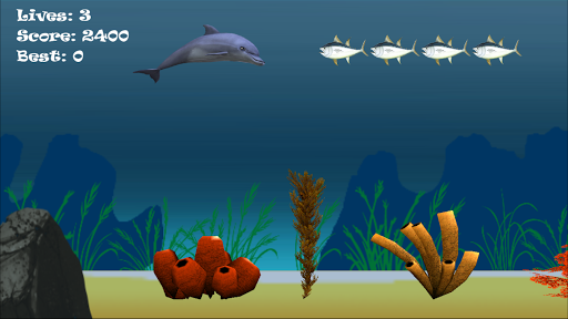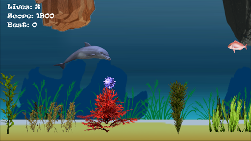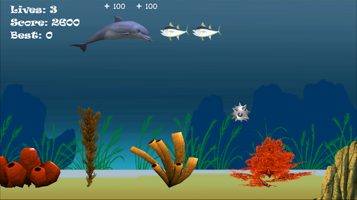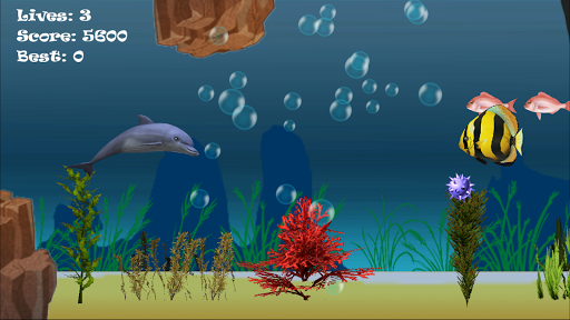 ** Three lives – swim carefully and don't let the angry dolphin hit the top or the bottom of the screen, as well as different obstacles and bombs!