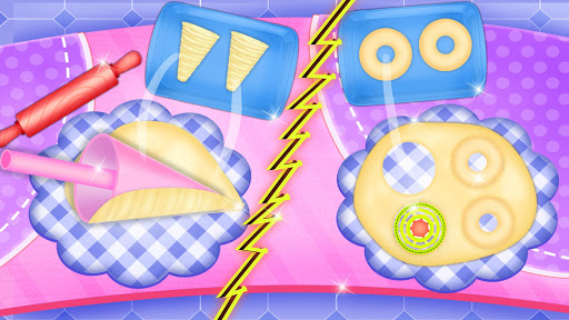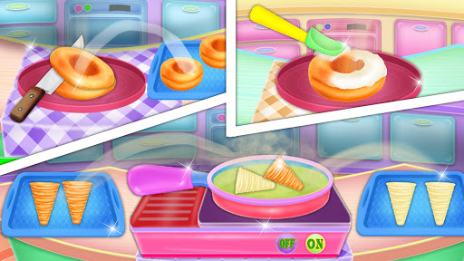 - Bake ice cream sandwich donuts and ice cream cone donuts in your sweet factory shop!