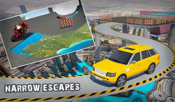 Welcome to impossible car driving games where your ultimate goal is to drive vigilantly on sky high narrow tracks. Extreme offroad stunt car driving challenge begins with an extra dose of amazing sports bike nitro and GT sky racing. Start your offroad car drive with lamborghini, super prado cars, dune buggy car, stunt bike and bmx bicycle. Launch yourself upon risky roads, control as you hit the loud pedal and roll into sky high impossible tracks racing games. Feel like stunt driving for your life on crazy heights to accomplish impossible missions. Hold motorcycle controls to perform crazy off road stunts by doing risky jump over the sky high ramps. Never back down as you drive insanely on impossible paths, jump from huge ramps on gapped tracks and increase your rep. Drift, drag and roll your ride to win on your tail, hitting each inch of the map hard by your impossible car stunt driving skills. Be a furious driver, own the sky high ramps and score to take ride on world’s most impossible tracks. Because one ride is never enough!