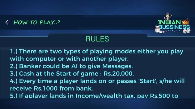 Indian Business King is a dice board game. As similar as original board game. Trade lands/properties, Win Auction, Roll for Fortune, Go jail, Pass by with credit from bank, get chances twice, & much much more... Play a game to become the wealthiest business player via buying, renting and selling the property. It's enjoyable and fun to play!