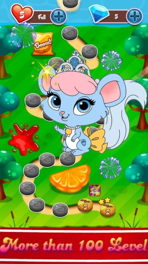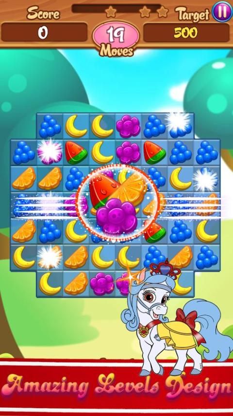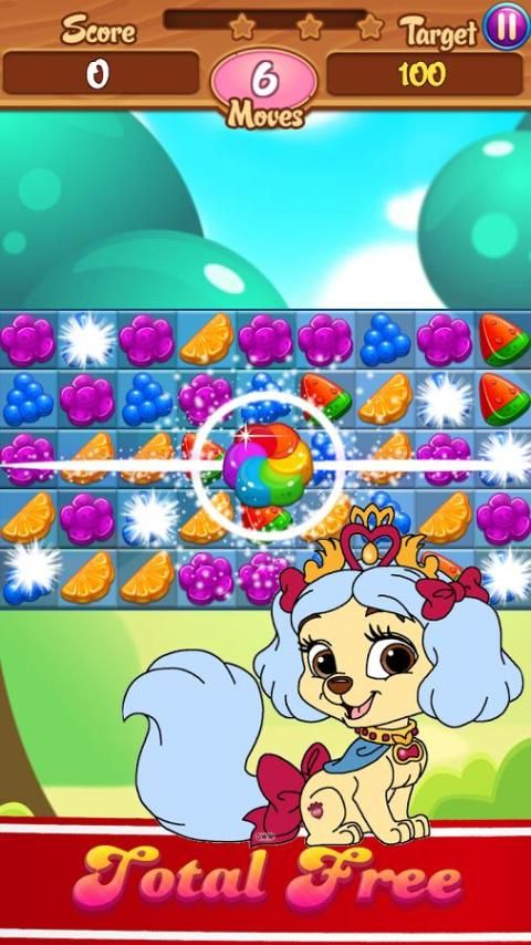 • Finish the level with the least move possible to get higher scores and more candy stars.