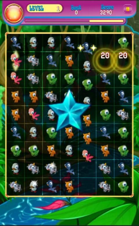 2: Match the animals until the board transparency,the Jewels star will appear.