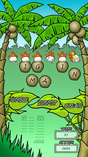 The letters shake and shimmy on your screen in Jumble Jungle Lite, a fun and addicting word game. Open the app to view six scrambled letters, then touch and drag them into their correct position to form the word. After each sixletter word is unscrambled you move to the next round. Easy to play, with extra points for guessing three, four, and fiveletter words, Jumble Jungle Lite will challenge the wordsmith deep within you.Similar to Text Twist and Word Mix.Three difficulty levels; easy, medium and hard to play 4, 5, or 6 letters.Great for players of all agesThree game modes available for a variety of game play.Campaign mode with 4000 individual levels Can you beat them all?Purchase the full for 16000 levels and hours of game playClassic mode for round by round game play.Arcade mode for continuous game play.How long can you last?Smack the same bird with a banana several times and watch how he takes his frustrations out on youHints available Campaign mode only every hour to help continue your game play progress.Keywords: Word Game, Anagram, Word Jumble, Text Twixt, Word Mix.