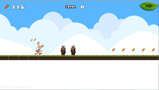 The Story Begin One Day there was a Very cute little Easter bunny.He was looking for something to eat in the Jungle Some Carrots.But the jungle is full of danger Like some Boxes and Some Trees and a Wolf, he was running and Jumping Over the Dangers to make himself stronger and Safe and Live, So he need you to help him,Start Collecting the Carrots Now !
