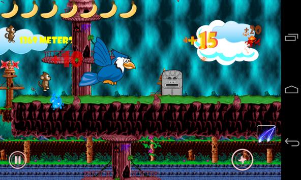 - Pick up specified fruit to get new ability or buff.(Awarding live, whirlwind attack, power shield, assistance via calling a Bulejay)